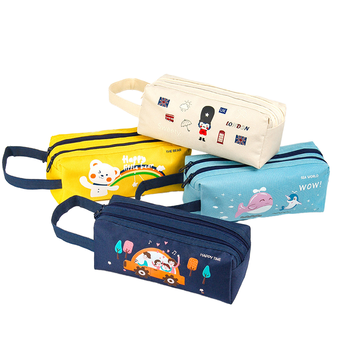 Astuccio in tela di grande capacità con impugnatura a doppia cerniera, materiale scolastico, borse a matita per studenti